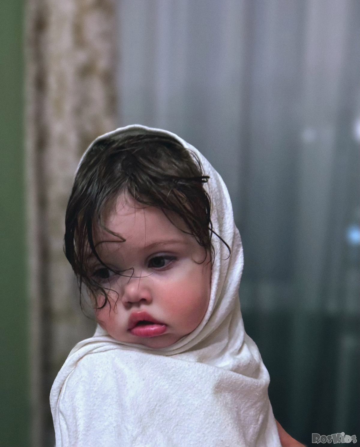Невероятная девочка, очень добрая и контактная, любит позировать на камеру, послушная, очень фотогеничная. Цвет волос темно русый, отдает золотом. Глаза серо-зеленые, на свету можно и голубым отдавать.